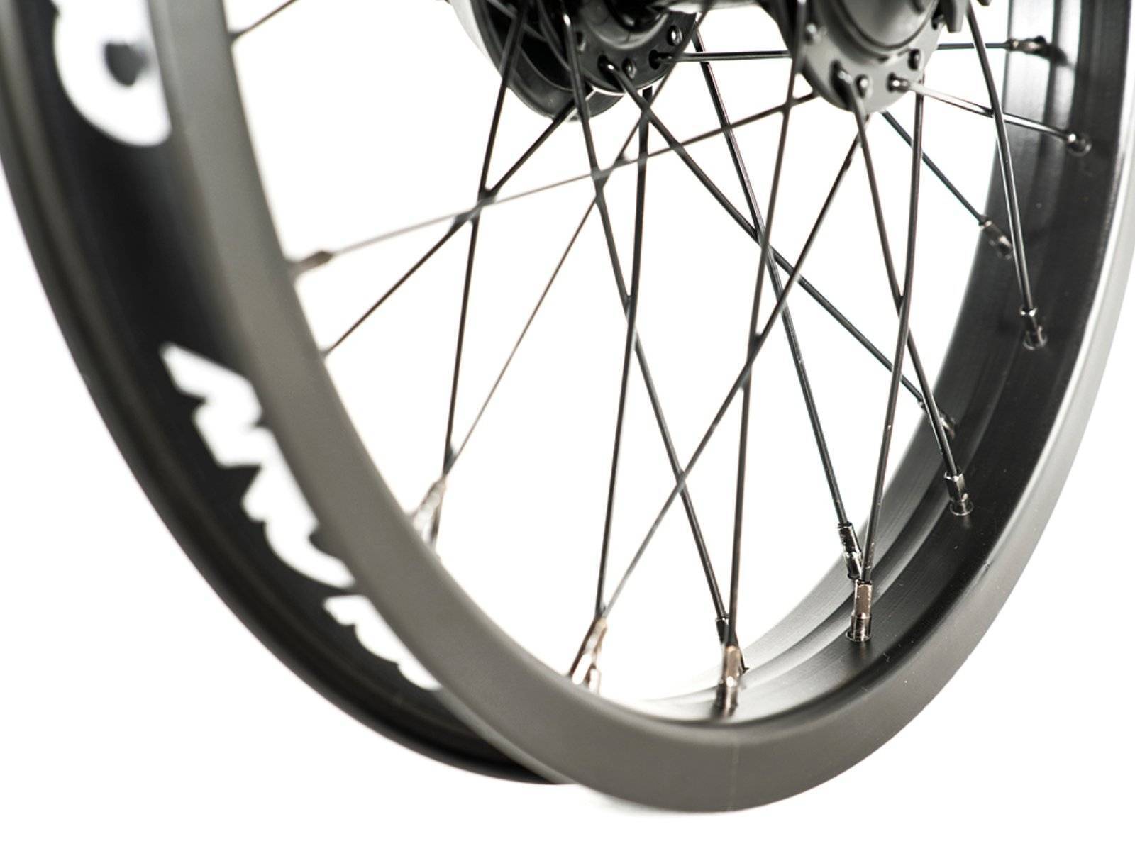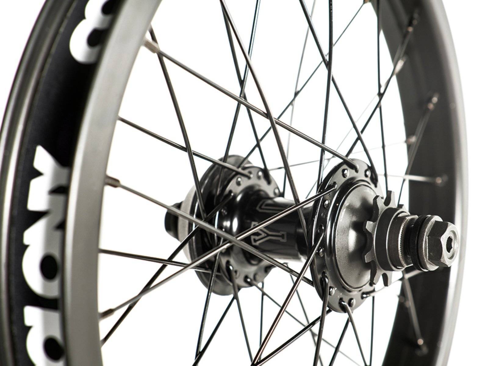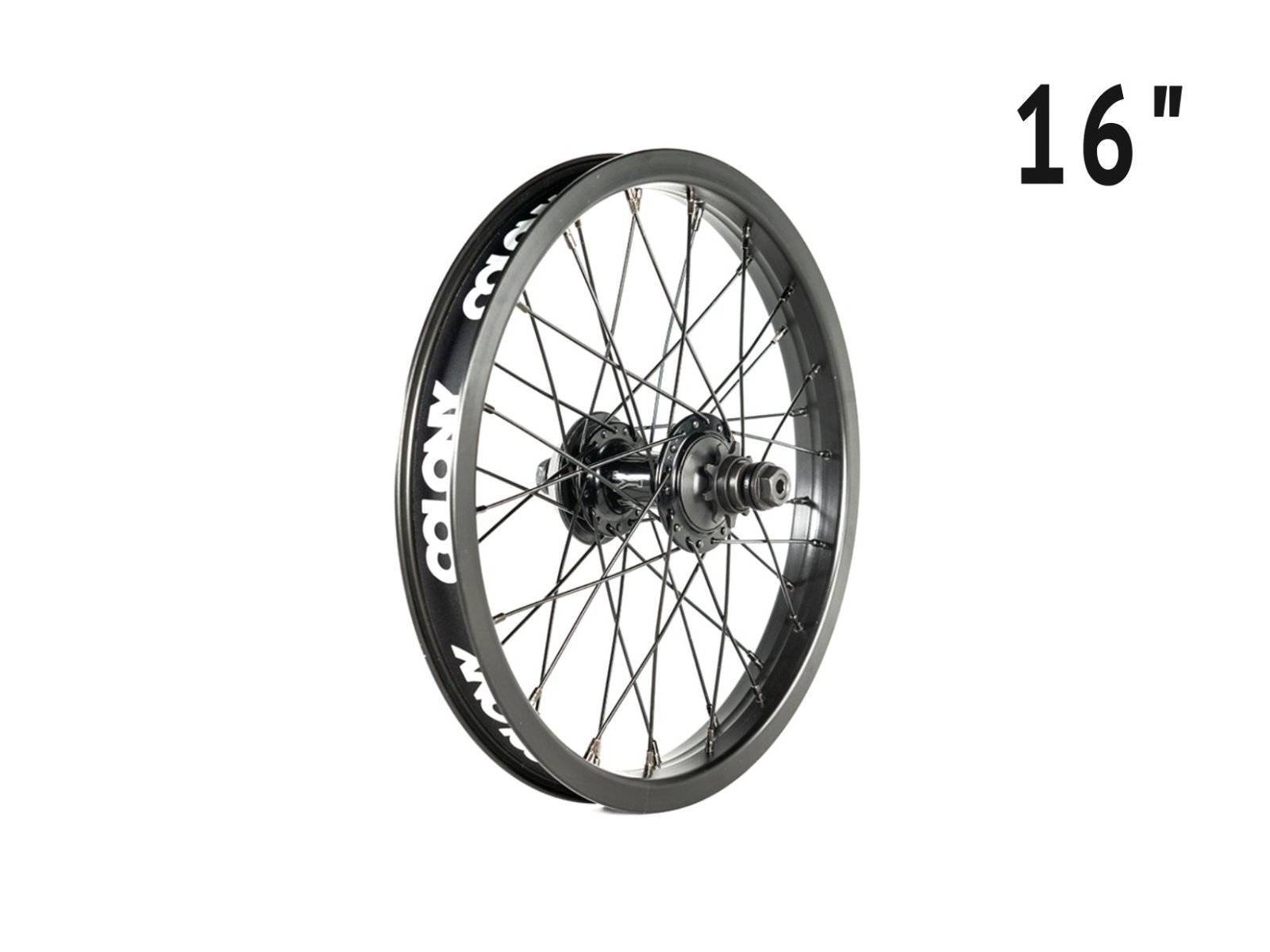 Заднее колесо 16'' в сборе на кассетной втулке Colony Wasp и ободе Colony Pintour. Спицы Colony 14G и черными латунными ниппелями. В комплекте идёт один фирменный хабгард, благодаря которому колесо готово к скольжениям прямо из коробки. Ободная лента Colony.