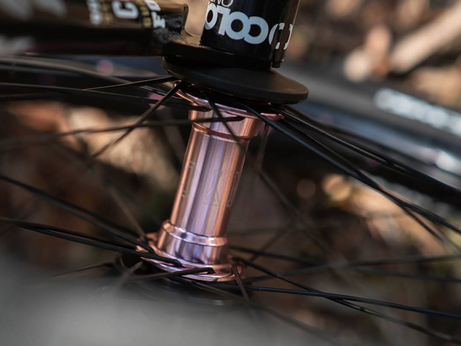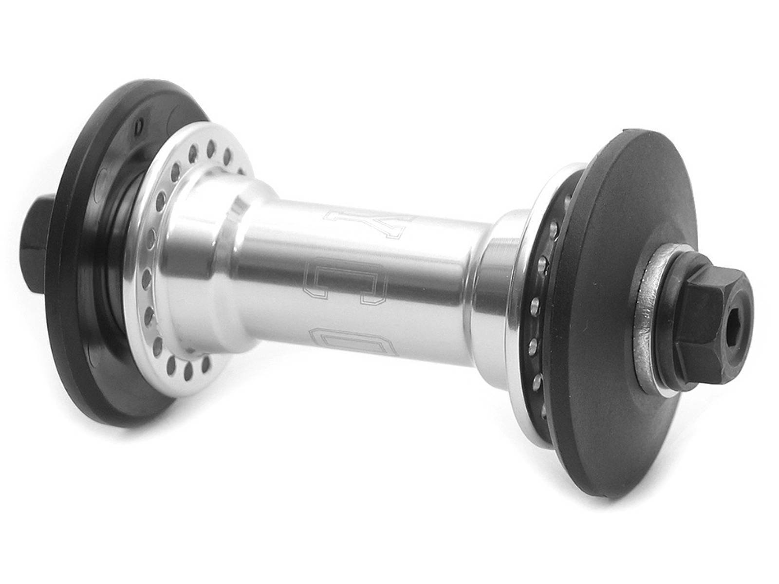 Передняя втулка с корпусом из 6061-Т6 алюминия и осью из 4130 Cr-mo, болты 10мм под 17мм ключ и 6мм шестигранник. Оснащена качественными подшипниками. 2 пластиковых хабгарда в комплекте.