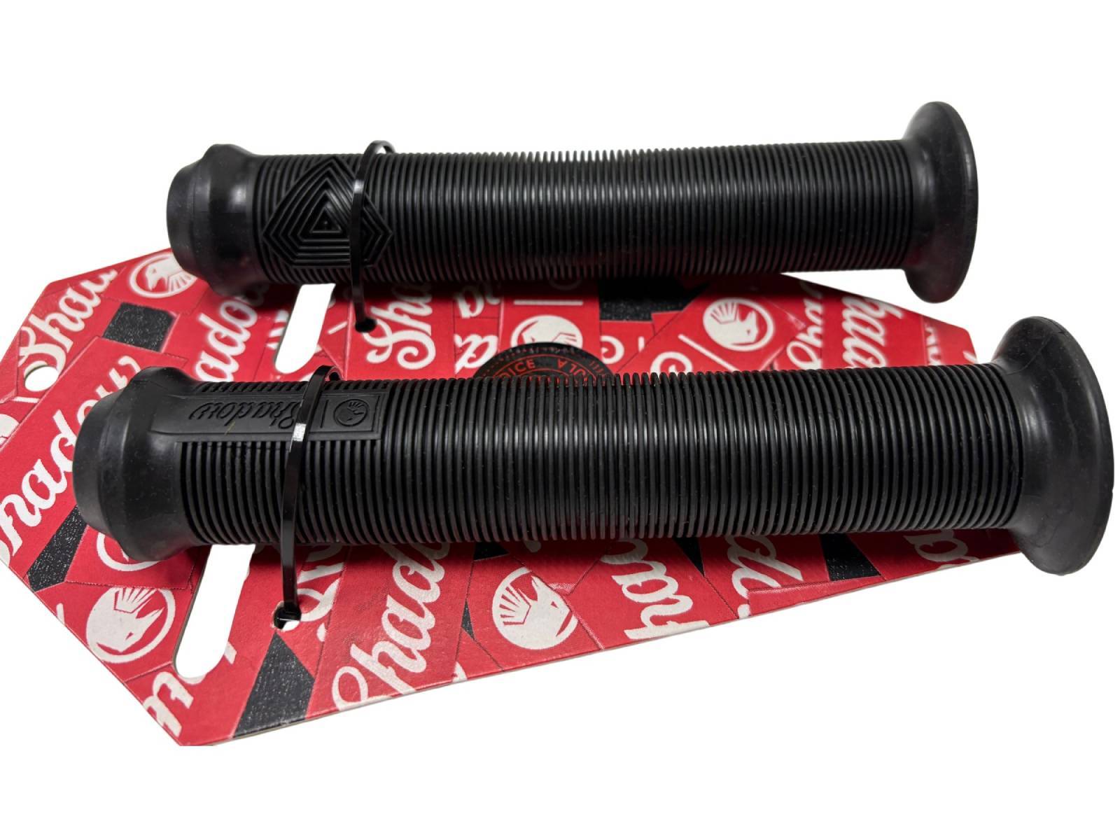 Мягкие грипсы с фланцами средней толщины VVS из запатентованной резины DCR от Shadow Conspiracy. Классический рельеф с кольцами отлично лежит в руке и обеспечивает максимальный комфорт. Утолщения по краям помогают руке не соскальзывать на руль и снижают риск разрывов при падениях. Промодель Matt Ray. Фланцы имеют графику в виде бриллианта. В комплекте легкие нейлоновые баренды Shadow.