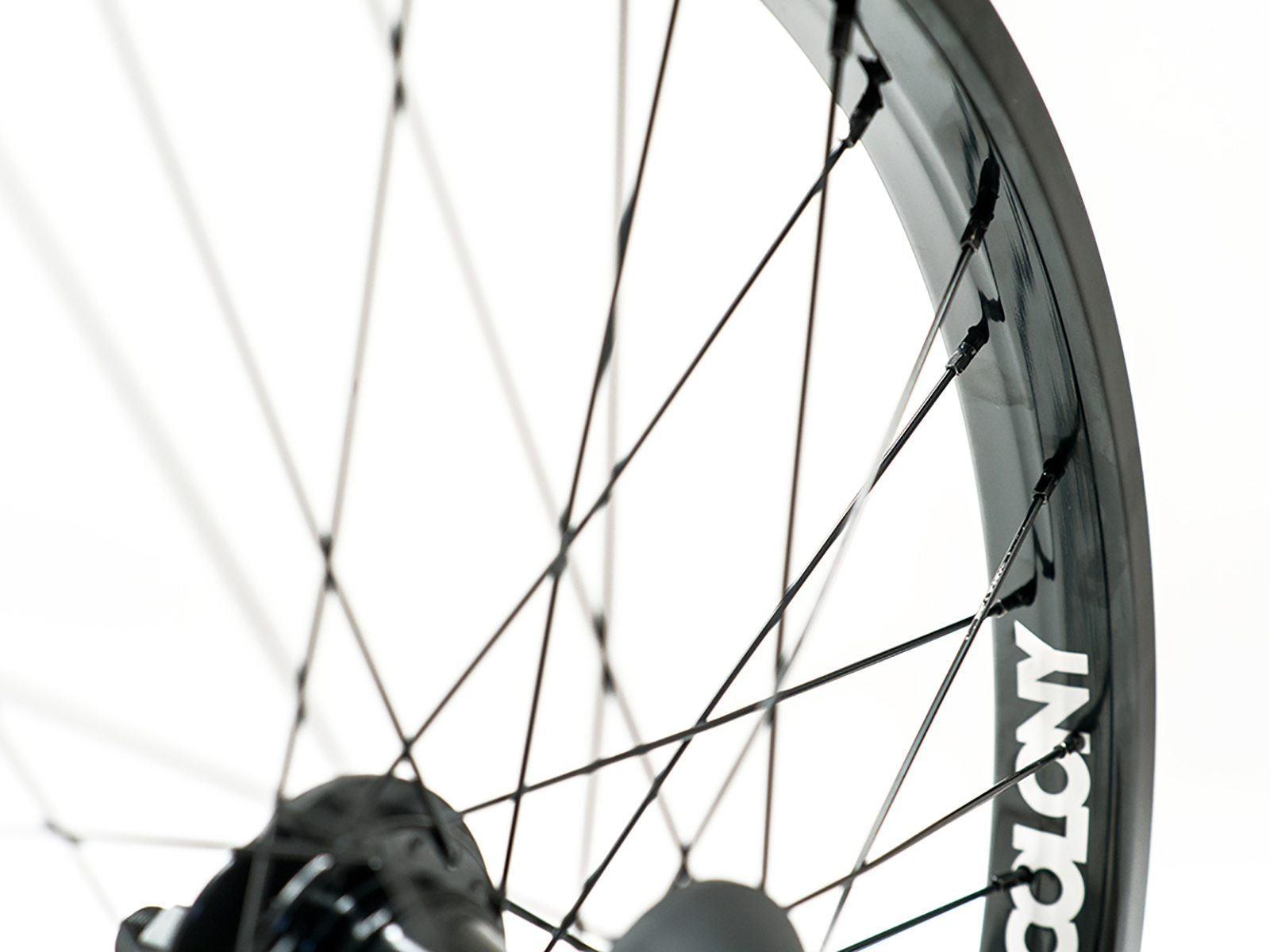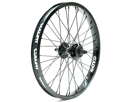 Заднее колесо в сборе на фрикостере Colony Swarm Freecoaster и ободе Colony Contour. Спицы Colony 14G и черными латунными ниппелями. В комплекте идут два фирменных хабгарда, благодаря которым колесо готово к скольжениям прямо из коробки. Ободная лента Colony.