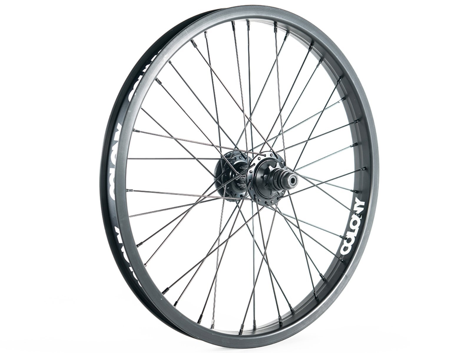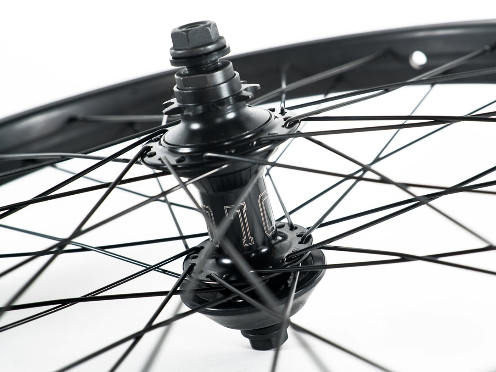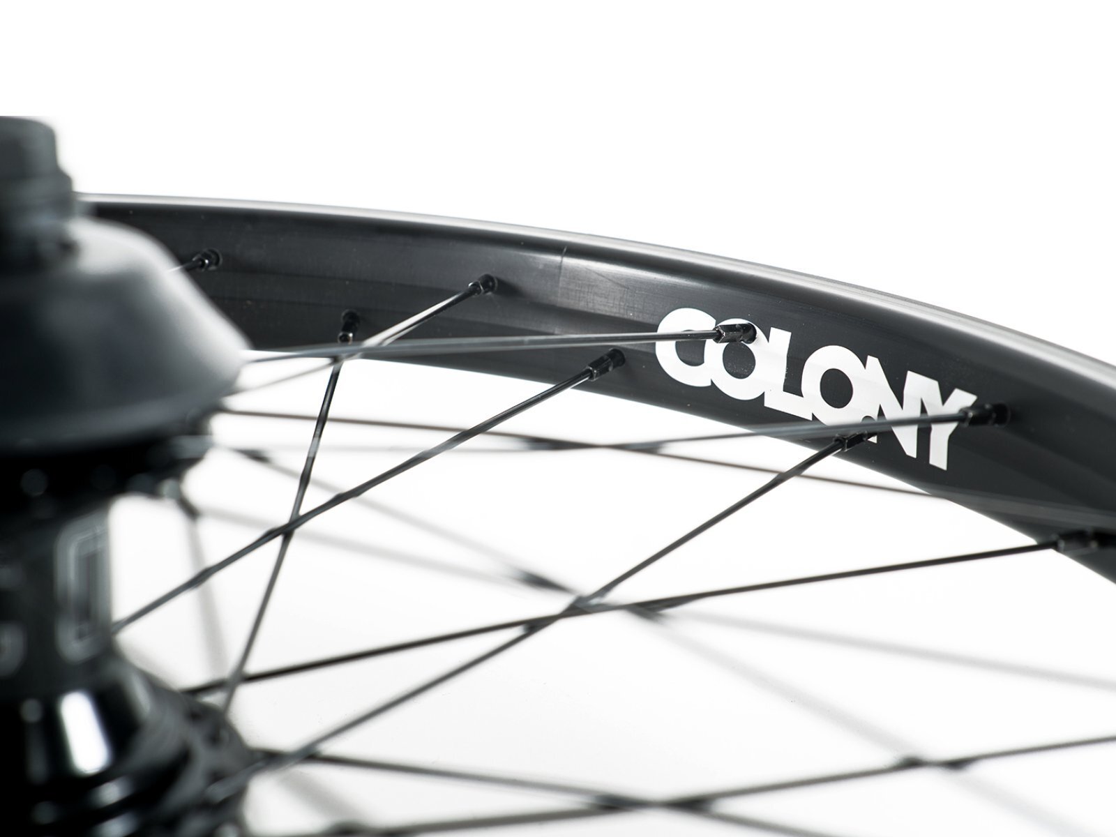 Заднее колесо в сборе на кассетной втулке Colony Wasp и ободе Colony Pintour. Спицы Colony 14G и черными латунными ниппелями. В комплекте идёт один фирменный хабгард, благодаря которому колесо готово к скольжениям прямо из коробки. Ободная лента Colony.
