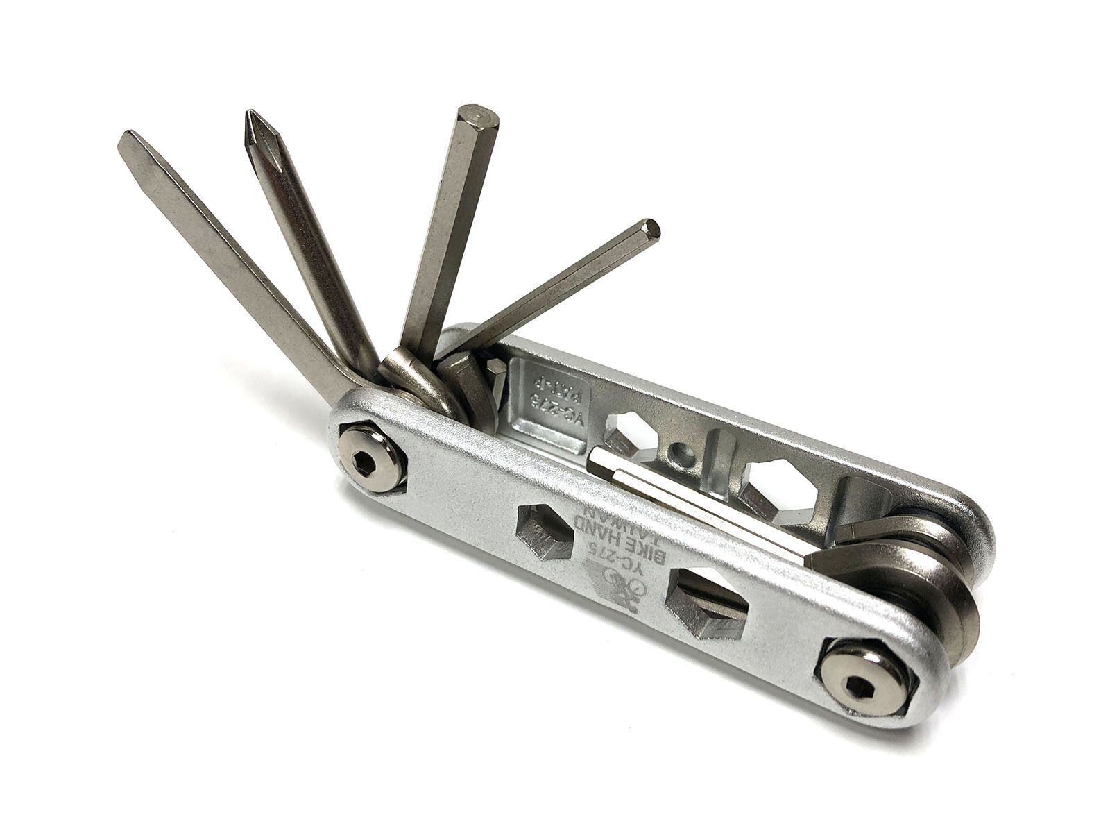 Компактный и легкий складной набор инструментов от BikeHand. Включает в себя 7 шестигранников, две отвертки, ключ для спиц и монтажки. Каждый ключ изготовлен из прочного материала, что обеспечивает долгий срок службы при использовании. Занимает минимум места, что делает его идеальным решением, чтобы всегда иметь с собой.