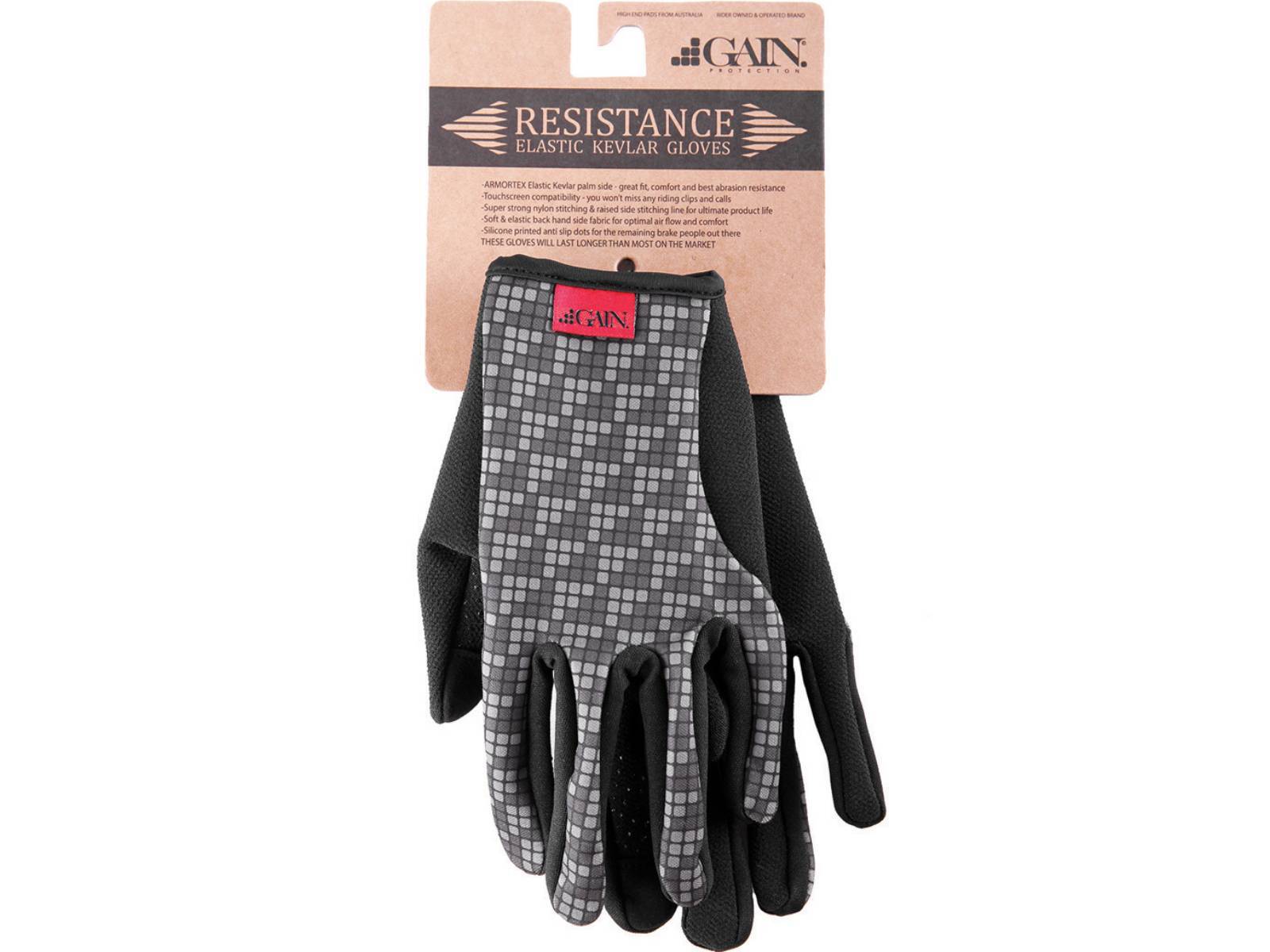 Перчатки изготовленные из эластичной ткани ARMOTEX в области ладони и больших пальцев, благодаря этому материалу перчатки устойчивы к стиранию и имеют тонкий форм-фактор, что невероятно важно для сцепления с грипсами для наибольшего контроля, не говоря уже о том, что данные перчатки отлично вентилируются. Верхняя часть перчатки изготовлена из сублимированной эластичной ткани, что так же обеспечивает максимальный комфорт. Данные перчатки можно использовать с сенсорными экранами без каких либо проблем, что очень удобно в холодное время года или непосредственно во время катания. Шильдик GAIN придаёт дополнительного стиля!