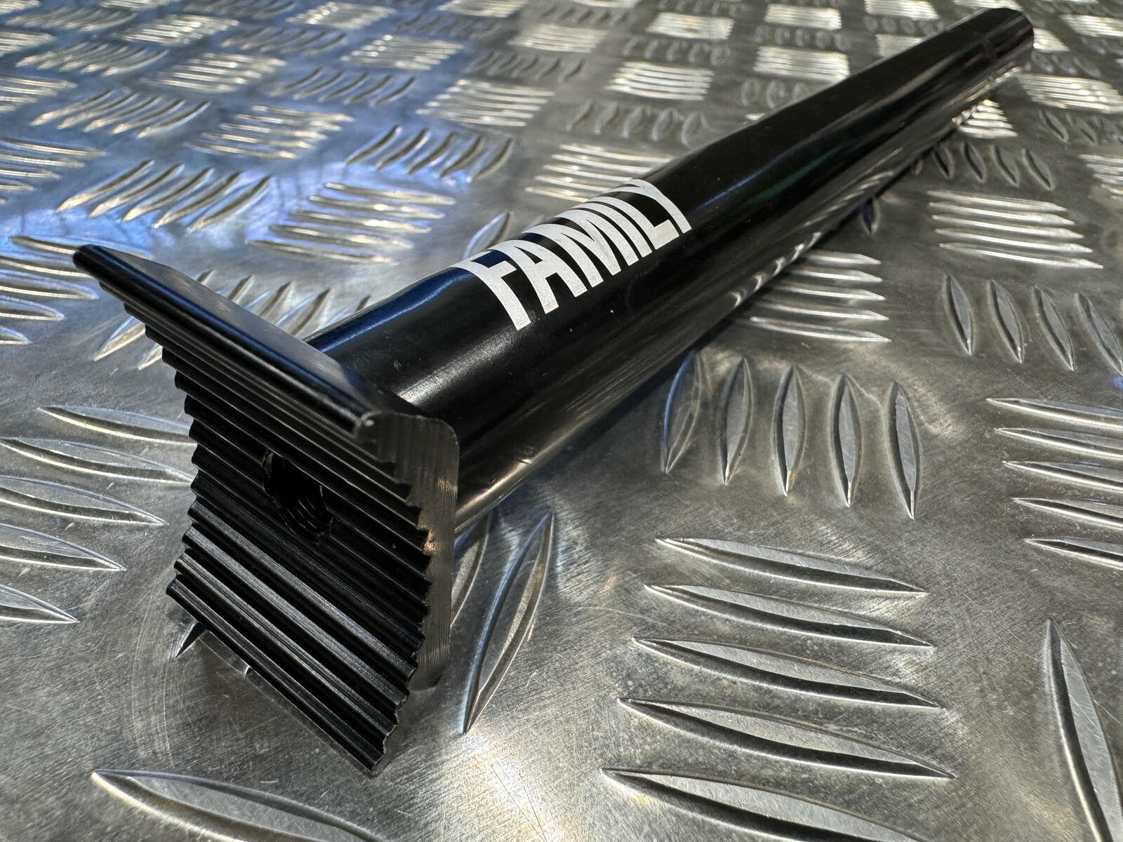 Длинный штырь Family Bmx имеет систему крепления Pivotal, которая позволяет быстро и легко устанавливать седло сквозным болтом к подседельному штырю. Это самый популярный, удобный и надежный стандарт в BMX индустрии. Также позволяет менять угол наклона. Имеет стандартный диаметр 25,4мм и подходит под все современные BMX рамы. Изготовлен из алюминиевого сплава 6061. Логотипы нанесены лазерной гравировкой. Family Bmx - Австралийский BMX бренд, младший брат легендарной компании Colony BMX.