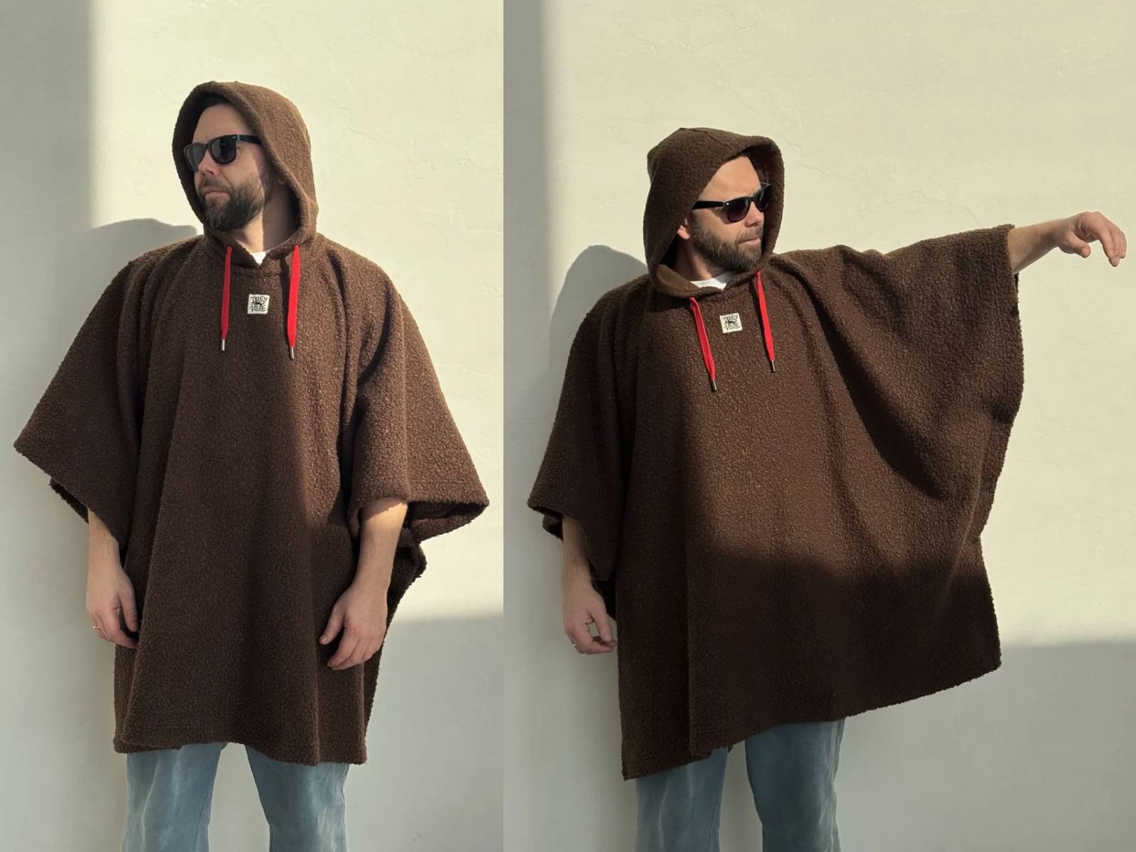 Пончо ОНИ или "Чехол для человека", изготовлено из 100% полиэстера. Плед с капюшоном на шнурках, отличный подарок для любителей уютного отдыха, мягкий, приятный на ощупь. Один размер. Логотип бренда на передней части.