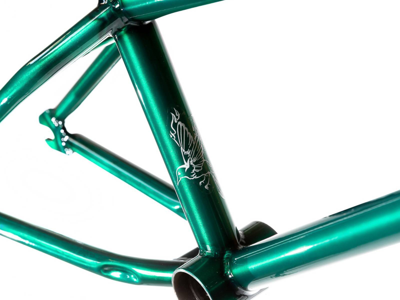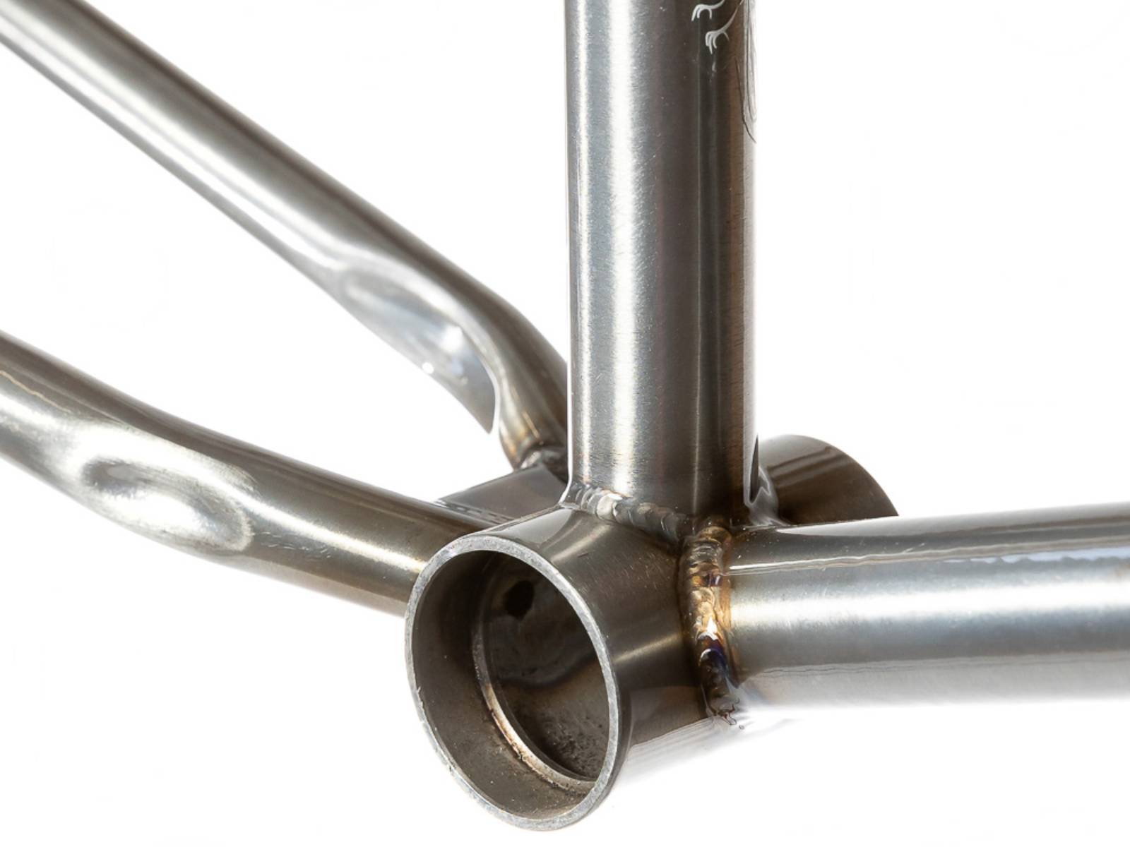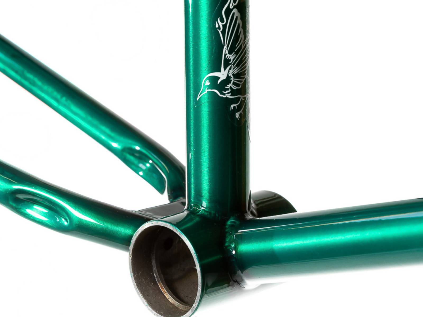 Парковая рама TSB Magpie выполнена из высококачественных баттированых хроммолибденовых труб и сварена вручную в Санкт-Петербурге, нижние перья термообработаны. Геометрия рамы была продумана вместе с профессиональным парковым райдером сборной России - Романом Сороко. Геометрия рамы это нечто среднее между коротким олдскулом и длинным ньюскулом. У рамы интегрированная рулевая, MID каретка, дропауты 6 мм и прочие атрибуты современной и технологичной рамы. Интегрированная рулевая колонка и подседельный зажим. Без креплений для тормоза! Возможность установки покрышек шириной до 2.4''. Рекомендуемый размер звезды 28 зубов.