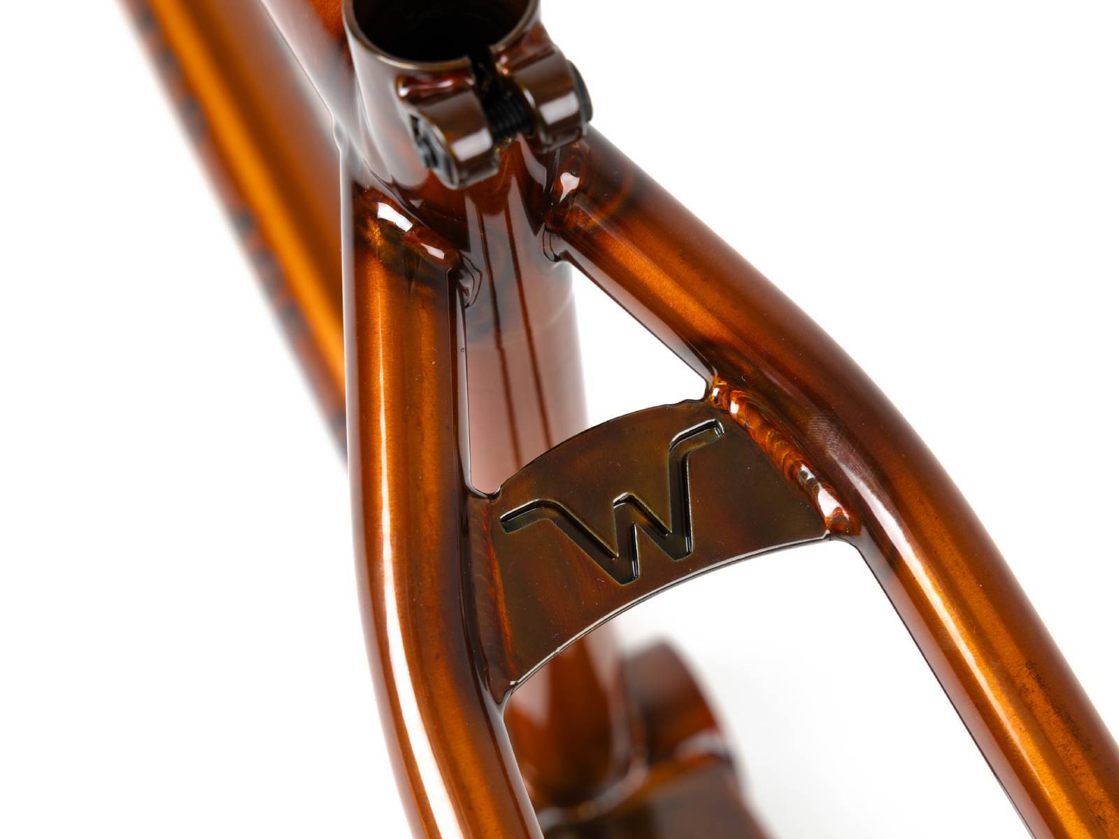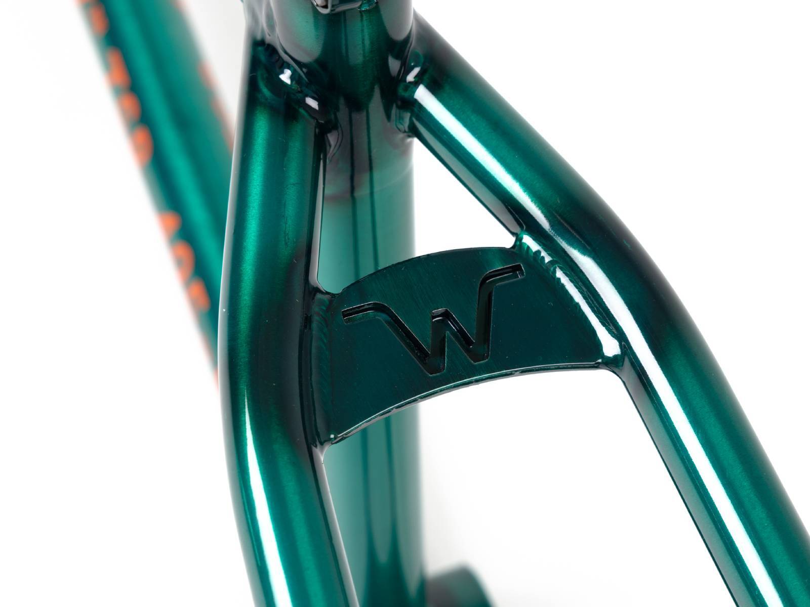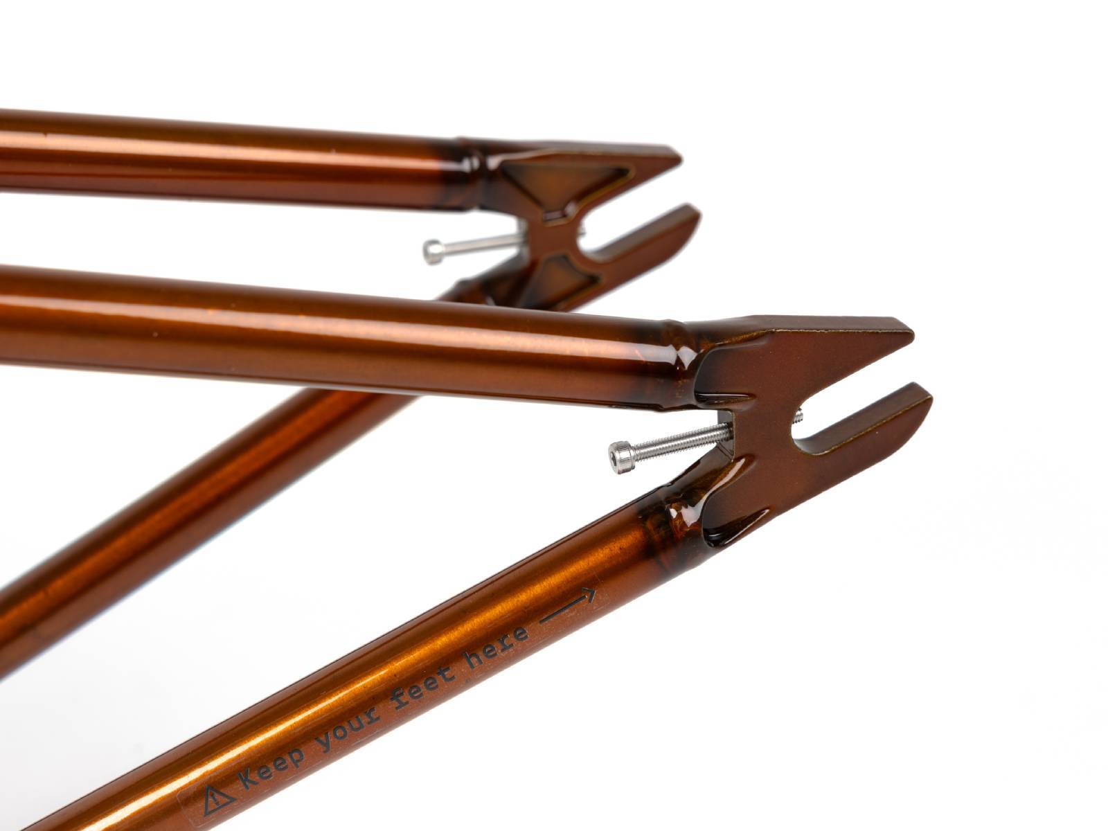 Подкова полая у каретки и монолитная вокруг колеса с термообработкой для увеличения прочности. Нижние перья закаленные для максимального сопротивления вмятинам при гриндах.