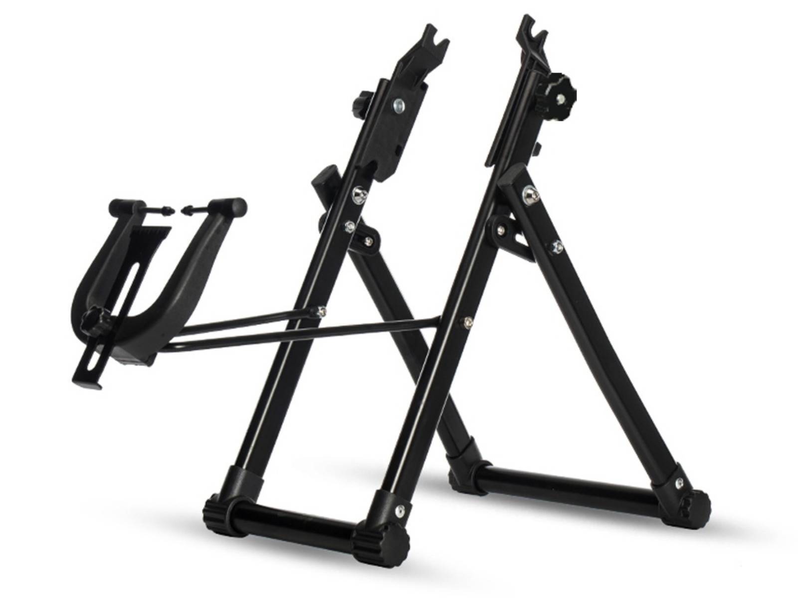 Стенд для ремонта и выравнивания велосипедных колёс. Регулируемая стойка для спицовки и исправления "восьмёрок". Имеет прочную и жесткую конструкцию, изготовлен из алюминия с элементами стали. Совместим для работы с колесами от 12 до 29". Компактно складывается для хранения.