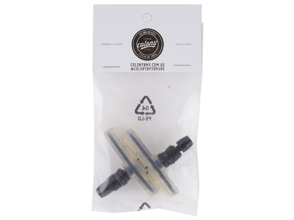 Тормозные колодки Colony BMX Brethren имеют стальной корпус и мягкие прозрачные резиновые накладки для максимальной эффективности торможения. Продаются парой.