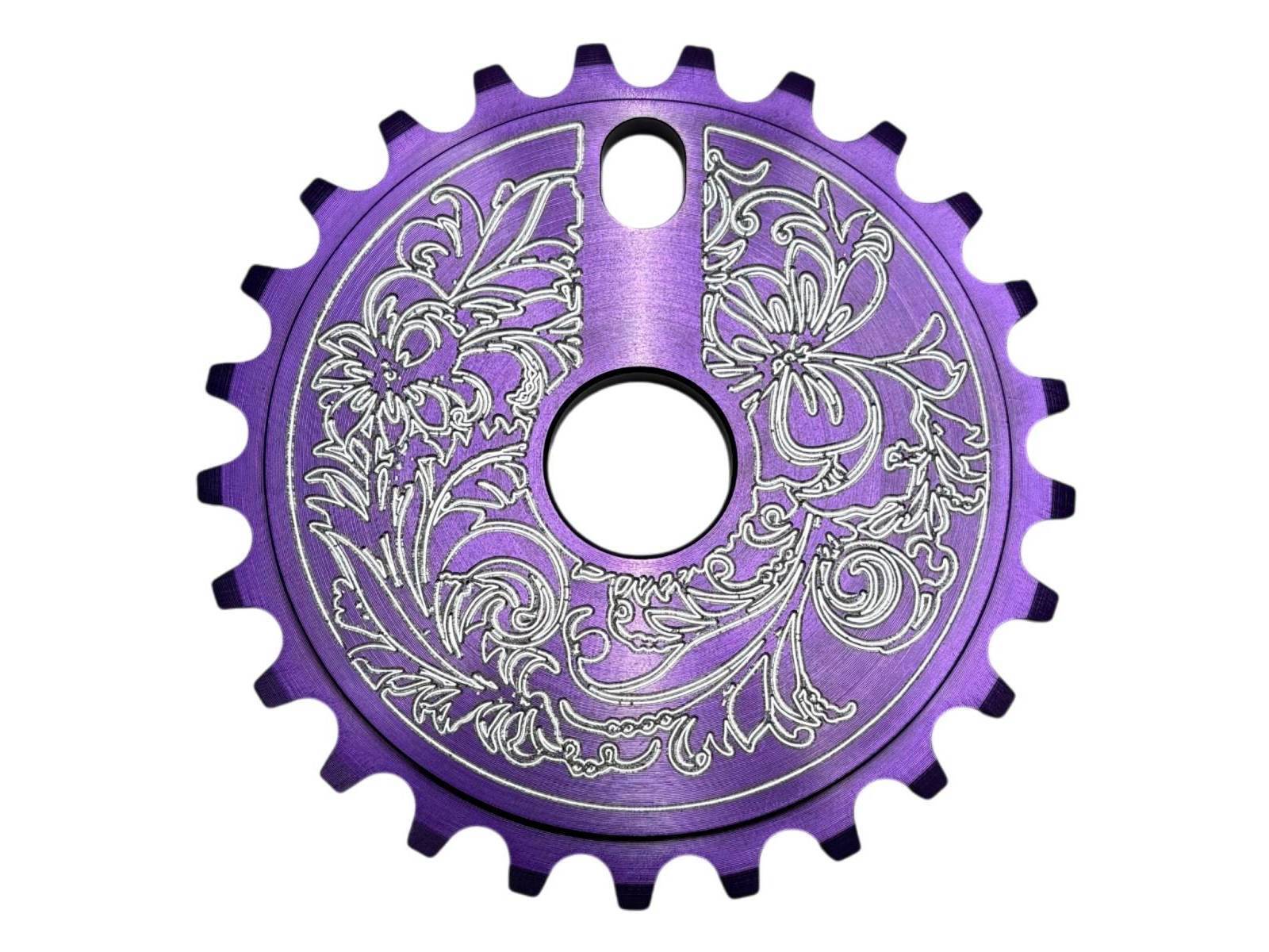 Звезда изготовленная из алюминия В95Т2 (Аналог 7075T) методом CNC обработки. Отверстие под 22мм, в комплекте идет переходник с 22мм на 19мм. Не совместима с шатунами Odyssey Thunderbolt, Powerbite v1, Primo Hollowbite v1, Kink Pillar и другими моделями с осями 24мм или с посадкой под 24мм. Совместима с любыми стандартными bmx цепями 1/8.