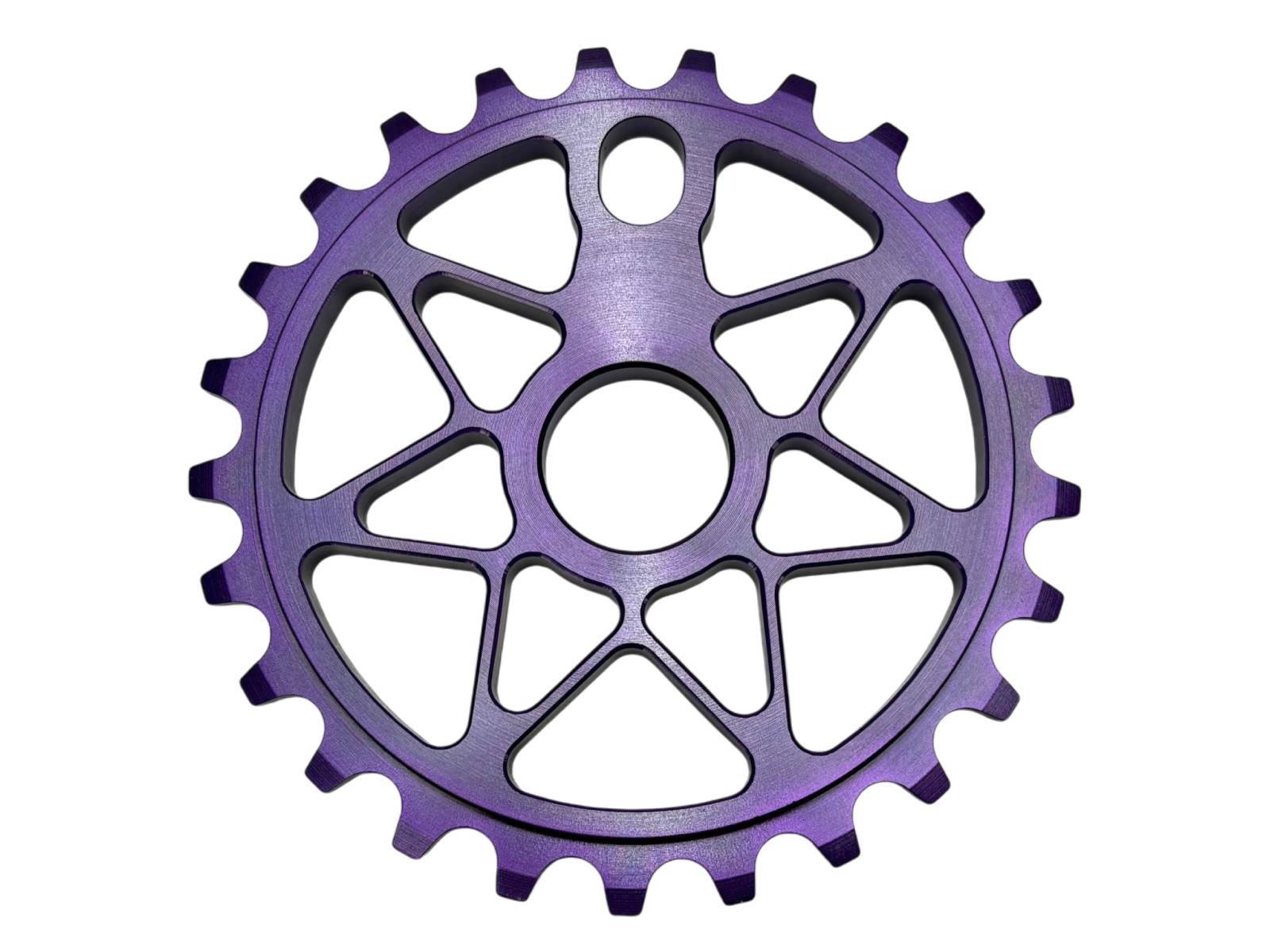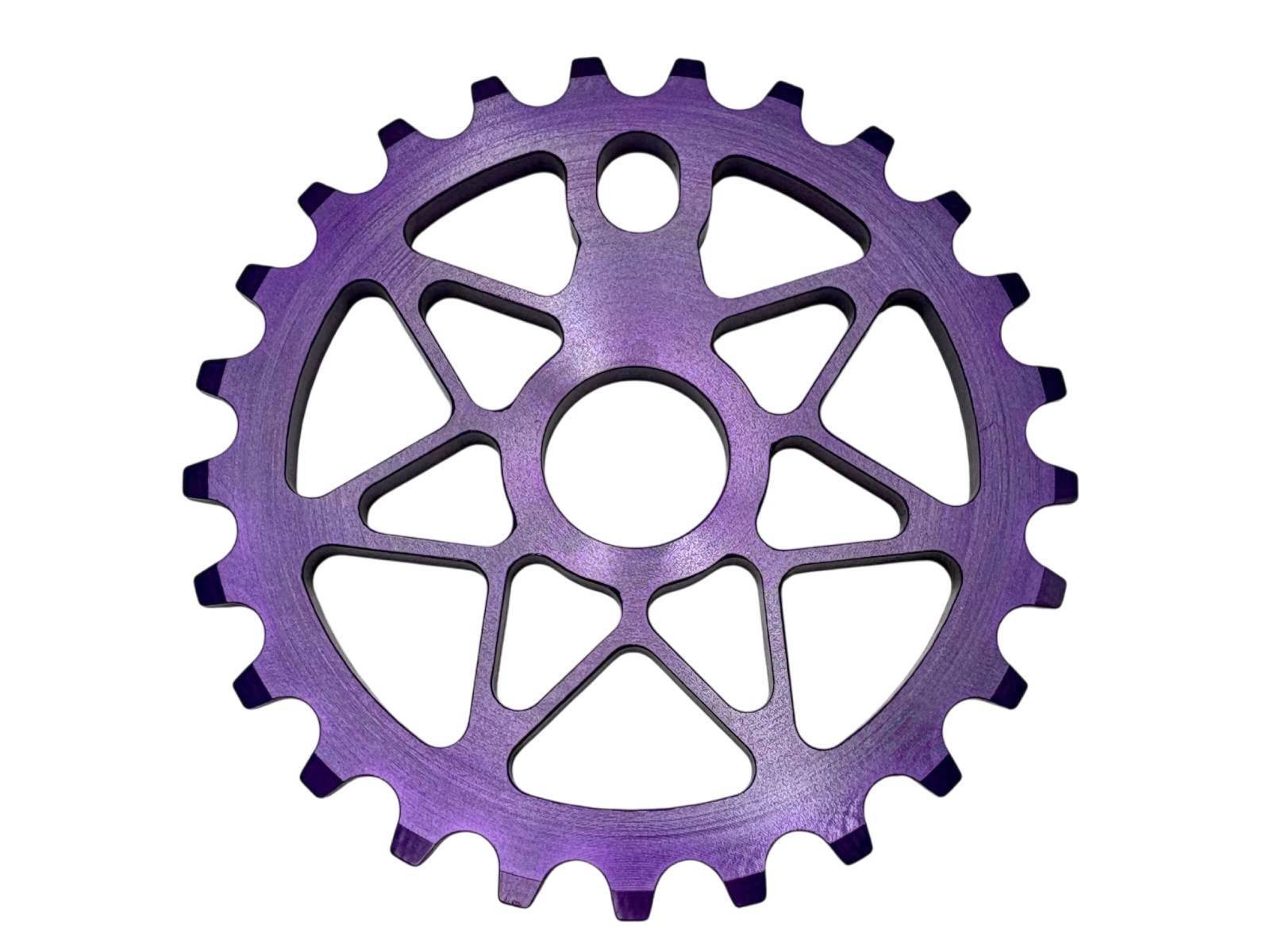Звезда изготовленная из 7075 алюминия методом CNC обработки. Промодельная звезда Гриши Коннова. Отверстие под 22мм, в комплекте идет переходник с 22мм на 19мм. Не совместима с шатунами Odyssey Thunderbolt, Powerbite v1, Primo Hollowbite v1, Kink Pillar и другими моделями с осями 24мм или с посадкой под 24мм. Совместима с любыми стандартными bmx цепями 1/8.
