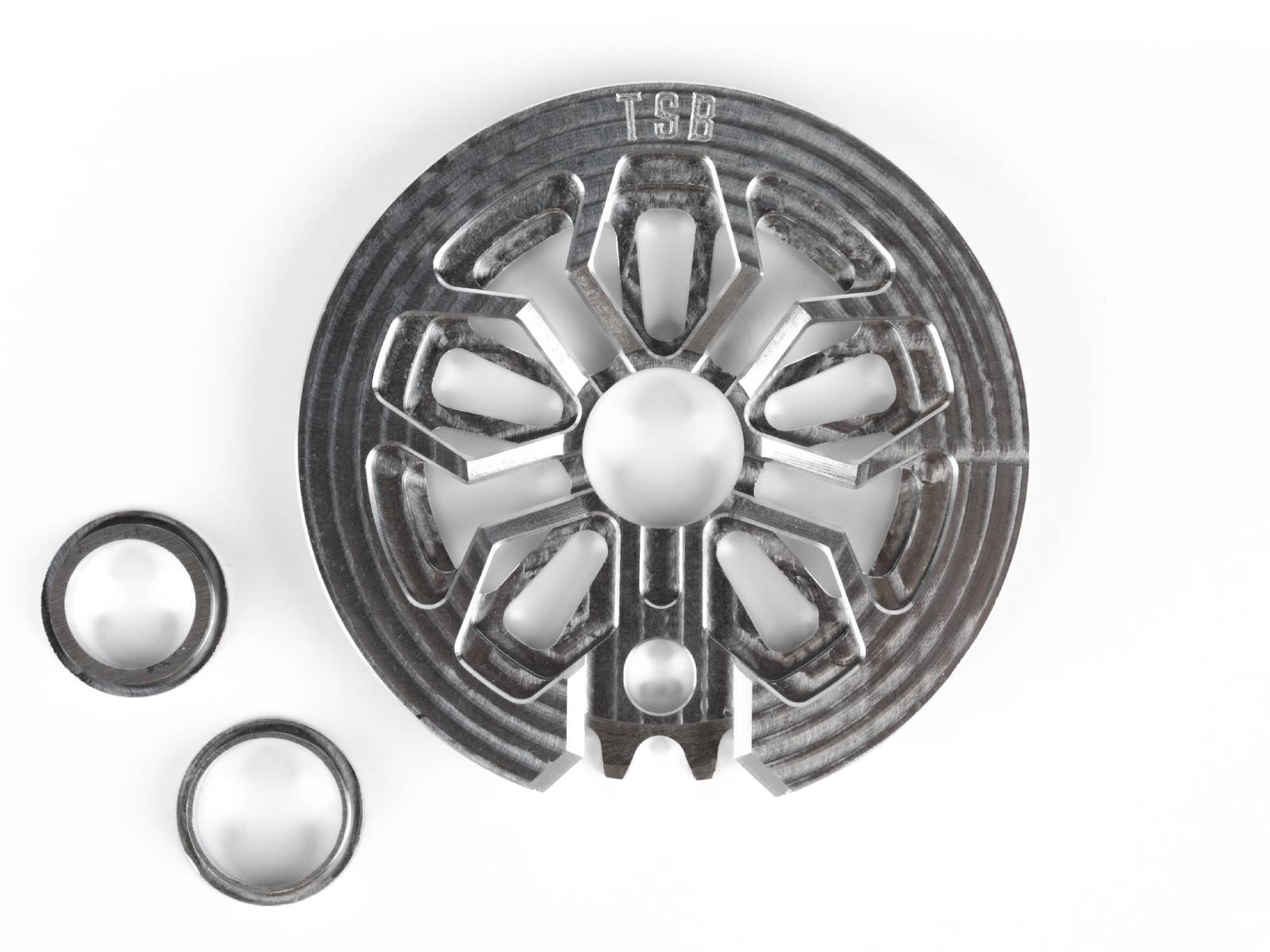 Мощная звезда с гардом, который выдержит самые суровые скольжения. Звезда выполнена из алюминия Д16Т, этот сплав обладает стабильной структурой, малым весом, хорошей прочностью, обрабатываемостью и сопротивляемостью к незапланированной микроскопической деформации. В комплекте идут переходники на 19 мм и 22 мм ось.
